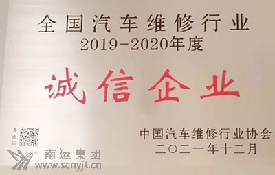 南運(yùn)集團(tuán)精誠汽車維修分公司榮獲 “全國汽車維修行業(yè)誠信企業(yè)”