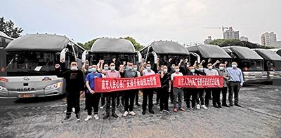 “現(xiàn)在我宣布,南運(yùn)集團(tuán)黨員先鋒隊(duì)馳援廣安,共同抗擊疫情,現(xiàn)在出發(fā)!”駕駛員們齊聲高呼:“廣安雄起!”“廣安加油!”在南運(yùn)集團(tuán)黨委書記、董事長(zhǎng)、總經(jīng)理王希平的一聲令下,南運(yùn)大巴車一輛接著一輛有序駛出車站,奔向令人牽掛的廣安鄰水,執(zhí)行抗疫運(yùn)輸保障任務(wù)。