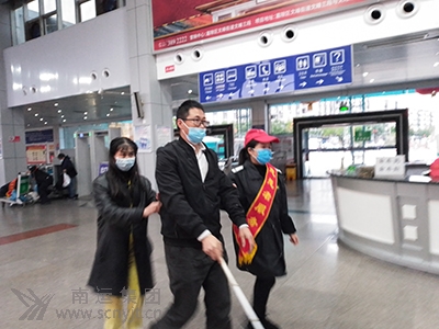 11月13日,寒風陣陣,天空下著小雨,明顯比前幾天冷了許多。八點十分左右,兩位旅客站立在南充汽車客運站售票廳門口,神態(tài)異常、焦急萬分,該站愛心班站務人員強燕和鄧雙發(fā)現(xiàn)后立即上前詢問,通過面對面觀察交流,得知兩位旅客都是盲人,他們乘坐出租車來到車站,準備坐9;30前往隆昌的班車。由于出租車司機把他們送到站前廣場就離開了,一時之間,他們不知道該往哪里去。身邊又無人陪同,強燕和鄧雙了解情況后,立即開展幫扶行動,一個攙扶兩位盲人旅客,一個用愛心推車將他們的行李搬到推車上,通過安檢直接推送到候車室暫時休息。 九點十分,兩位站務人員提前通過綠色通道,將兩位盲人旅客送進站臺攙扶上車,裝好行李。并告訴駕駛員這兩位旅客的情況,再三叮囑一定要把這兩位盲人旅客送到接站的家人手里。 愛心班站務人員細心周到的服務,讓這兩位盲人旅客感激不已,坐上車后,他們緊握著愛心班工作人員的手說道:“謝謝,謝謝你們了!”“不用謝,這是我們應該做的。”強燕和鄧雙異口同聲的回答道。目送著班車的發(fā)出,她們又立即返回到自己的工作崗位上,準備為下一位旅客服務。 真誠做人、平凡善舉、用心做事,踐行服務至上的理念,用愛溫暖旅客回家路,是該站愛心班每位成員的優(yōu)良傳統(tǒng)。 (李利 陳春華)