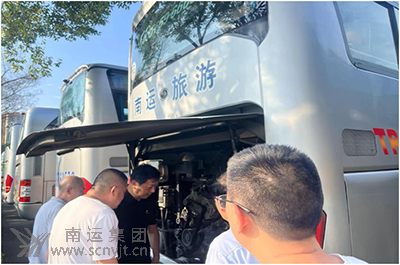 高速客運(yùn)分公司安全生產(chǎn)第一責(zé)任人岳軍帶隊(duì)檢查車輛發(fā)動(dòng)機(jī)及隨車滅火器
