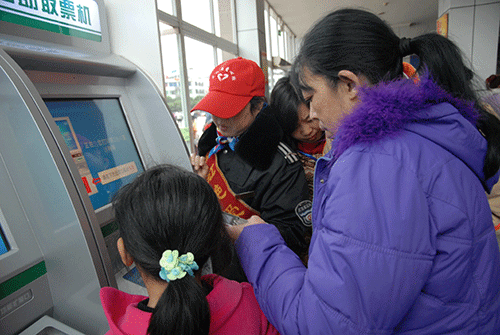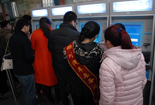 雖然車站在市轄三區(qū)和郵政網(wǎng)點設(shè)置了50個站外售票點,但售票廳9個售票窗口一直排著購票的旅客隊伍。車站臨時增加了1個出售成都和1個出售廣東、深圳、汕頭的售票車處。車站自助取票機由原來的4臺增設(shè)為6臺,旁邊張貼著印有二維碼、支付寶等條目標的“南充客運站官方網(wǎng)站”,在四川汽車票務(wù)網(wǎng)兩名工作人員和1名“小紅帽”站務(wù)人員的引導下,讓旅客通過手機掃二維碼購買車票。一名去宜賓的年輕旅客,拿出手機,輕輕掃了一掃二維碼,便成功地取到了由南充去宜賓的汽車票,他高興地說:“互聯(lián)網(wǎng)+掃二維碼,快捷地就買了車票,不用排隊了,真方便。”售票大廳里排隊購票的秩序井然,但沒有看見售票廳象往年那樣排隊購票的隊伍排到售票廳外面的現(xiàn)象了。