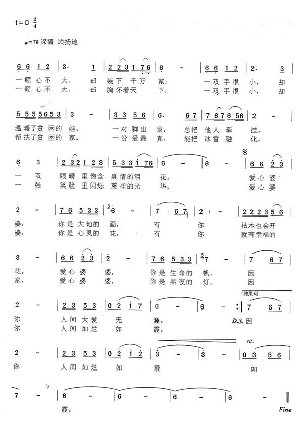 謹(jǐn)以此歌,獻(xiàn)給四川道德模范、四川好人葉千秀老人。葉千秀,女,漢族,南充市南運集團(tuán)退休職工。她是一位年過七旬的老人,身患糖尿病,卻仍然堅持幫助他人;她把幫助他人當(dāng)作最大幸福,人們親切地稱她“愛心婆婆”。