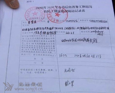 每位乘客的《四川省2020年春節(jié)后出省務工和返崗農(nóng)民工健康狀況隨訪記錄表》