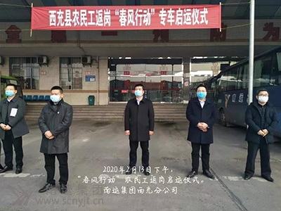 2020年2月8日開(kāi)始,我司下屬單位陸續(xù)啟動(dòng)“春風(fēng)行動(dòng)”工作。截止2月15日,啟動(dòng)“春風(fēng)行動(dòng)”專(zhuān)用車(chē)24臺(tái)次,運(yùn)送農(nóng)民工返崗667人。