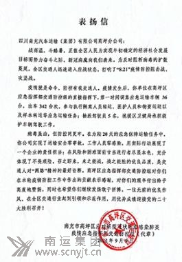 鄧迪還自費(fèi)為社區(qū)各值守點(diǎn)位捐贈(zèng)飲用礦泉水十余件,極大的彰顯了南運(yùn)集團(tuán)共產(chǎn)黨員在關(guān)鍵時(shí)刻、危難時(shí)刻奉獻(xiàn)社會(huì)的先鋒模范作用,社區(qū)大媽們翹起大拇指說:“你們南運(yùn)人真棒!”8月27日,順慶區(qū)西山街道辦事處伍家埡社區(qū)居民委員會(huì)還給南運(yùn)集團(tuán)旅游分公司寄來了情真意切的《感謝信》。