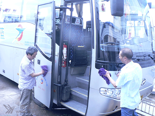 6月30日下午,藍(lán)光公司員工王會(huì)林、楊林二位同志頂著烈日、揮汗如雨、不辭辛勞、心甘情愿地為旅游車輛甘當(dāng)“美容師”。經(jīng)過他倆兩個(gè)多小時(shí)努力的打掃,整臺(tái)車輛是一塵不染、煥然一新。