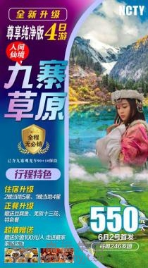A線:九寨黃龍草原四日游 B線:九寨草原四日游 炎炎夏日,去九寨看最美的水,醉人的歌! 去草原享青草花香,藍(lán)天白云! 去黃龍看色彩斑斕,洗滌心靈! 【九寨】九寨每個(gè)季節(jié)都有不同之美,夏季九寨清涼避暑,秋季色彩繽紛惹人眼,冬季冰雪覆蓋,美成童話世界;