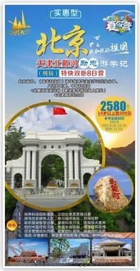 北京故宮、(清華科技園)、(清華優(yōu)秀畢業(yè)生學習經(jīng)驗分享)、八達嶺長城、中國科技館+北戴河海濱浴場(乘坐豪華游輪海上觀光)+天津周鄧紀念館8日營 特色:1.培養(yǎng)科技創(chuàng)新潛質,讓綜合素質更臻完善。 2.探尋歷史感悟人文,參與城市體驗,開闊視野。 3.聆聽高端智慧分享,掌握科學方法,提高學術素養(yǎng)。 4.相約中國傳統(tǒng)文化,考察長城防御,增添建筑思維。 5.自主管理成長歷練,凝聚團隊精神,鑄就合作品質。 6.海濱-盡情嬉戲,乘坐豪華游輪海上觀光,放開心扉暢快游玩。 夏令營贈送:營服、營帽、旅游胸牌、當?shù)孛刻煲黄康V泉水、集體照一張、陪同人員! D1:成都西—北京西 。夯疖嚿 成都西乘火車T8次08:10分硬臥(途經(jīng):德陽、綿陽、江油、廣元)。在夏令營領隊人員的帶領下沿途欣賞中華山水美景,一路歡歌笑語,一路溫馨平安,奔向偉大祖國首都——北京。 D2:北京 住:北京/周邊 12:36 北京西站接站; 13:15 乘車出發(fā),前往天安門廣場; 14:00 游覽天安門廣場(約1小時),這是世界上最大的城市廣場,也是社會主義新中國的象征。 15:00 參觀故宮博物院(約2小時)。故宮是明、清兩代的皇宮,世界現(xiàn)存最大、最完整的古代宮殿建筑群,凝結著歷史的煙云,記載著歲月的滄桑。在這里,巧奪天工的建筑、燦爛文明的見證足以激起每一個華夏兒女的民族自豪感。游覽太和、中和、保和三大殿和乾清宮、坤寧宮、文華殿、御花園等建筑,探訪神秘的皇宮內(nèi)院歷史遺跡,感受博大精深的中華文化。 18:30 晚餐19:30乘車返回酒店休息。 D3:北京 。罕本/周邊 07:00 營員起床洗漱 07:30 早餐 08:00 前往軍事博物館 08:30 中國人民革命軍事博物館位于北京天安門西面的長安街延長線上,籌建于1959年,是向國慶10周年獻禮的首都十大建筑之一。是中國唯一的大型綜合性軍事歷史博物館,全館有22個陳列廳、2個陳列廣場。軍博收藏34萬多件文物和藏品。其中國家一級文物1793件,大型武器裝備250余件,藝術品1600余件,對外軍事交往中受贈禮品2551件。其中有銅鎏金弩機、鎮(zhèn)遠艦鐵錨、葉挺指揮刀、三八式步槍和解放軍第一輛坦克等重大歷史價值文物。 10:00 走進中國最杰出的大學之一:清華大學科技園區(qū)(約1小時)。參觀清華?萍紙@區(qū),感受清華文化。政策性閉校外觀。PPT展示,了解清華、北大悠久歷史與校園風光,零距離的接觸清華的優(yōu)秀學子們,感受他們的智慧,感知他們的拼搏,同學們,讓我們用心品味一下大學真正的精髓與文化,把父母口中的"大學"切切實實的感受,清晰一下自己的未來,給自己的人生描繪一幅愿景圖吧,在這里感受中國最高學府的人文魅力。(清華優(yōu)秀畢業(yè)生學習經(jīng)驗分享)聆聽優(yōu)秀學子交流,(約40分鐘)。 贈送:清華大學博士服照片,清華大學; 12:00 午餐 14:30 游覽圓明園通票(約1.5小時)小交通自理,這里是清朝五代皇帝傾心營造的皇家營苑,被世人冠以“萬園之園”、“世界園林的典范”、“東方凡爾賽宮”等諸多美名,身臨其境后才真正了解到圓明園。跟我一起走進圓明園,一起去銘記那段屈辱的歷史! 18:00 晚餐 19:00 返回酒店休息 D4:北京 。罕本/北戴河 03:00 營員起床,洗漱,整理行裝。早餐打包。 05:00 觀看莊嚴的升旗儀式、升旗儀式如遇當日限流,則視為不可抗力因素取消,請周知。 07:30 乘車前往萬里長城。 09:00 前往“燕京八景”之首居庸疊翠,八達嶺長城, “不到長城非好漢”,登上海拔888米最高潮“北八樓”,極目遠眺,腳下的長城依山就勢,蜿蜒起伏,如一條不見首尾的巨龍在綿綿上嶺上翻滾爬到,氣勢磅礴,雄偉壯觀。 12:00 午餐。 14:00 參觀【中國科技館】(2小時),科學觀摩體驗—中國科技館。參觀現(xiàn)代科技,古代科技和兒童科技展覽。參與“月球漫步” “模擬飛機”“機器人樂隊”“虛 擬世界”“魔力水車”“航天飛機科學實驗”等豐富有趣,可以增長知識項目,營員動手探索實踐,用雙手感受高科技的無窮魅力,培養(yǎng)科學思想,科學方法和科學精神。 16:00 人文景觀體驗:外觀奧林匹克公園,、鳥巢、水立方外景。是2008年北京奧運會標志性建筑物之一。奧運會后成為北京市民參與體育活動及享受體育娛樂的大型專業(yè)場所,并成為地標性的體育建筑和奧運遺產(chǎn)。 18:30 晚餐。 19:30 返回酒店休息。 D5:北京-北戴河 。罕贝骱 05:00起床、洗漱,用早餐。 6:00前往北京火車站根據(jù)火車時間或者汽車前往北戴河; 11:00抵達北戴河用午餐。 12:30參觀【奧林匹克大道公園】(1小時),欣賞奧運之美。鄧亞萍、王軍霞等十多位奧運冠軍曾親臨這里,感受奧運精神,向奧運冠軍學習。營員們可與前奧委會主席薩馬蘭奇塑像合影留念,精美的浮雕、音樂噴泉、單體雕塑、中國奧運冠軍手足印及簽名、運動場、輪滑場和戶外健身設施等,親身體驗更高,更快,更強的精神。 14:00乘坐豪華游輪【王子號或公主號游船海上觀光】(約40分鐘),乘風破浪飽覽渤海風光,遠眺秦皇島港口及沿海風光。 15:00在【海濱浴場自由活動】(約90分鐘,為保證自身安全只限觀景,不可下海游泳),舉行海邊拔河,堆城堡游戲,拋開書本,盡情享受陽光沙灘海風,組織撿拾貝殼,帶給親人和小伙伴來自大海的問候。 D6:北戴河-天津-成都 。夯疖嚿 5:00起床洗漱用早餐 6:00前往天津; 10:00 參觀【周恩來鄧穎超紀念館】,全國愛國主義教育示范基